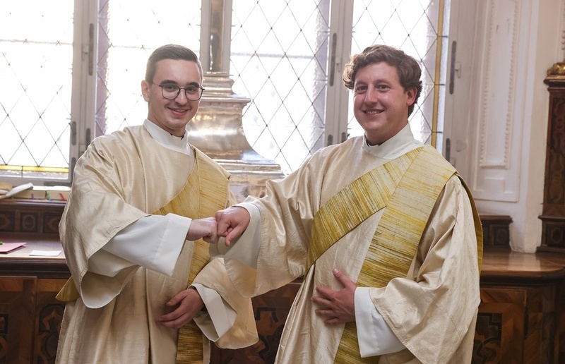Zum Foto: Am 29. Juni, dem Hochfest der Apostel Petrus und Paulus, werden Thomas Lang (l.) und Lukas Weissensteiner (r.) – im Bild bei ihrer Diakonenweihe im Vorjahr – um 15 Uhr im Grazer Dom zu Priestern geweiht. Foto: Neuhold/Sonntagsblatt