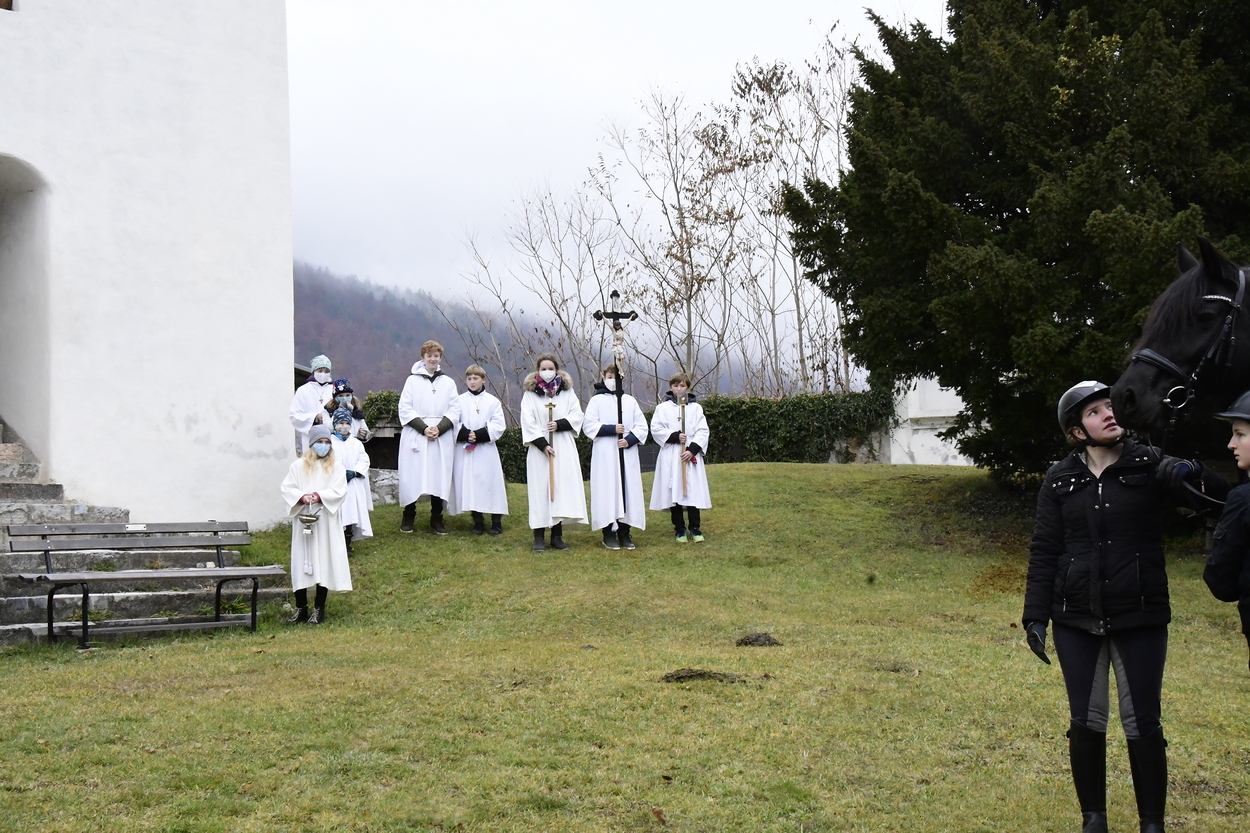 Im Rahmen des Gottesdienstes wurde den 12jährigen Ministranten das große Ministrantenkreuz überreicht. Das Hochamt wurde vom Gesangsverein Deutschfeistritz – Peggau festlich gestaltet und nach der Festmesse wurde im Kirchhof in altbewährter Weise die Pferdesegnung vorgenommen.