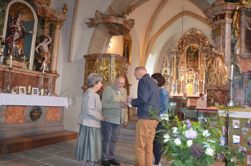 Am Ende des Gottesdienstes wurden die Paare geehrt und erhielten eine Kerze unserer Pfarre, danach eine kleine Verköstigung im Pfarrhaus.