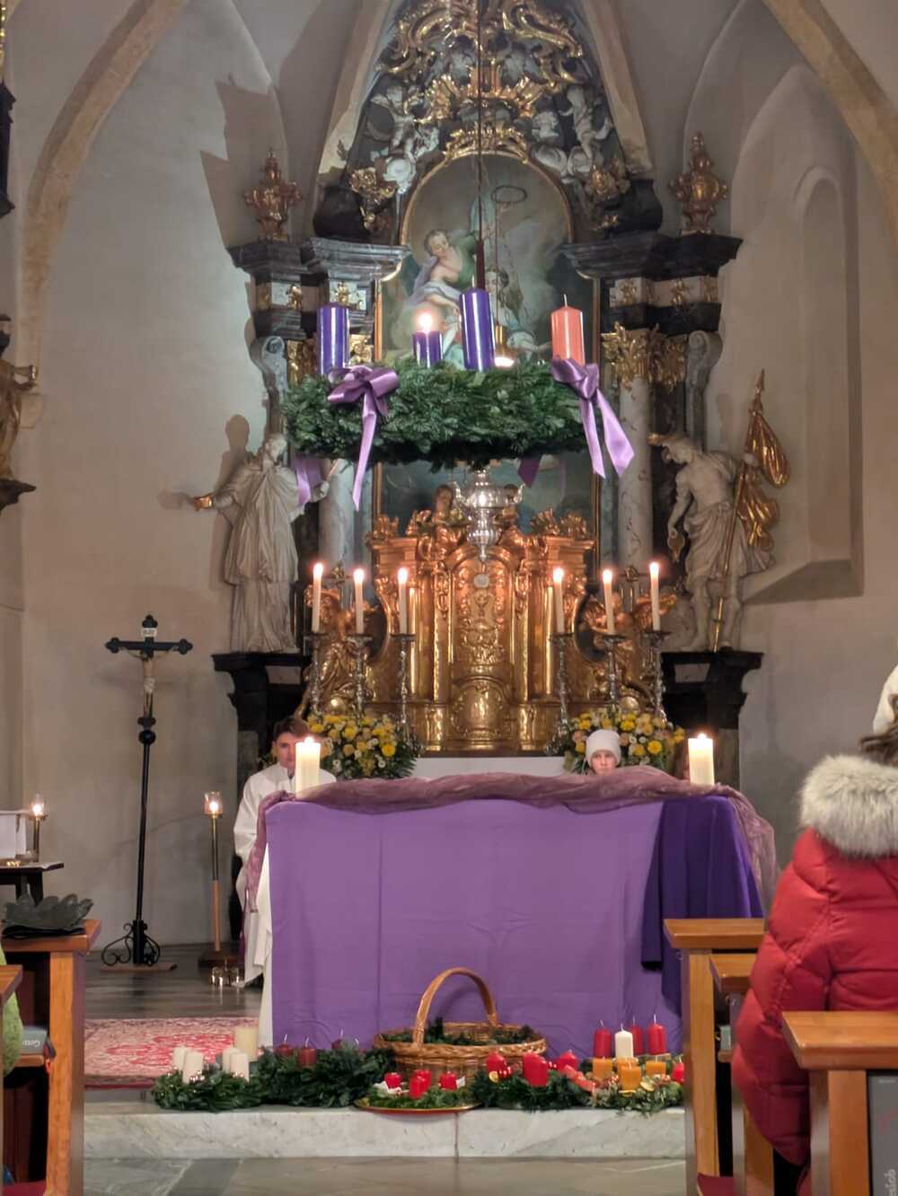 Bei beiden Gottesdiensten wurden die mitgebrachten Adventkränze gesegnet und alle Mitfeiernden konnten in der adventlich geschmückten Kirche in diese Atmosphäre eintauchen.