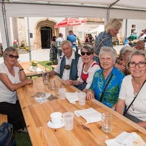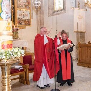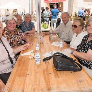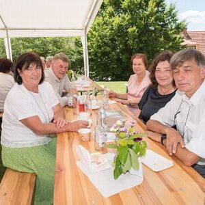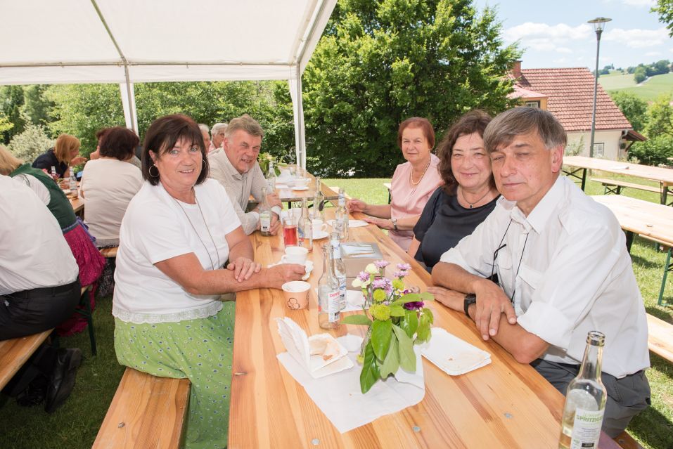 Gesellig ging es vor der Kirche weiter: Kühle Getränke halfen bei der hohen Temperatur, Frankfurter, Aufstrichbrote und Kuchen gegen den Hunger, außerdem war unter anderem für musikalische Unterhaltung gesorgt. Insgesamt war dieses Startfest eine Premiere:  Die sieben Pfarren Röthelstein, Frohnleiten mit Adriach, Übelbach, Deutschfeistritz mit Peggau, Stübing, Gratkorn und Semriach haben Messfeier und Fest miteinander und gemeinsam vorbereitet und organisiert.  Der Start in die Zukunft Kirche bei uns ist gelungen!
