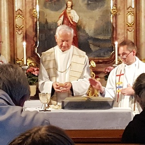 Da der neue Pfarrer am 27.März seinen 50sten Geburtstag gefeiert hatte, gratulierte man ihm und hieß ihn mit einem Glas guten Weins willkommen.