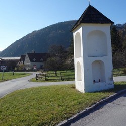 Dieser Bildstock wurde schon im 15. Jh. in der Frohnleitener CHRONIK erwähnt. Dieses sehr alte Zeichen des Glaubens an der Grundherrschaftsgrenze zwischen Frohnleiten und Rabenstein diente damals als Übergabeort von Verbrechern mit einer eigenen Zeremonie von einer Gerichtsbarkeit zur anderen.