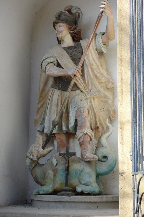 Am Georgi-Sonntag 1981 segnete Pater Hieronymus die wunderschöne, hochbarocke Holzstatue, welche anschließend in einer feierlichen Prozession von der Kirche zum sorgfältig erneuerten Hausbildstock getragen wurde. Vor der Einweihung des renovierten Bildstocks hielt Peter Nahold eine liebenswerte Ansprache über die Geschichte des gegenständlichen Georgi-Bildstocks. Der Einweihung ging eine kurze, aber gewaltige Rede von Pater Hieronymus voraus. Für die musikalische Umrahmung sorgte die Adriacher Sängerrunde und die sogenannte „Fink-Kapelle“ vom Musikverein Frohnleiten. Die Festansprache hielt OSTR. Msgr. Prof. Johannes Parizek.