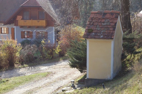 Am Dorfeingang des alten Kirchweges aus der Gams nach Adriach steht auf dem Anwesen der Familie Fassl vulgo Hacker ein schöner Hausbildstock.