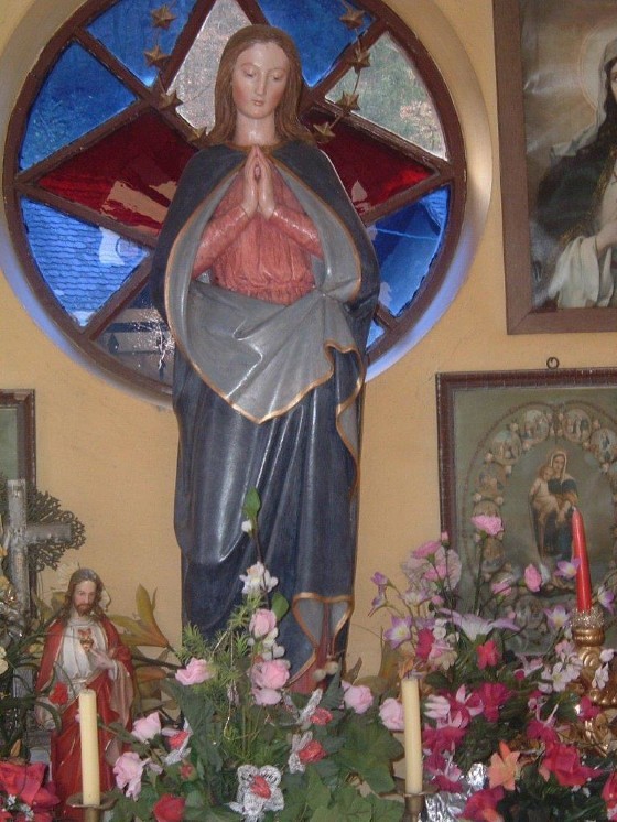 Herzstück dieser Kapelle ist eine wunderschöne Muttergottesstatue aus Gips, flankiert von einigen Jesus- und Marienbildern.