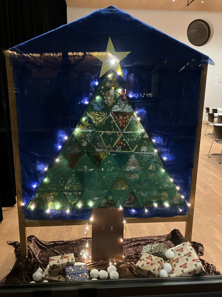 Die Kindergartenkinder gestalteten mit Ihren Betreuerinnen im Vorfeld des Nachmittags das 12. Adventfenster, das im Pfarrsaal ausgestellt wird. Alle freuten sich schon auf die gemeinsame Eröffnung des Fensters und versammelten sich am Peter-Paul-Platz. Mit Liedern und Geschichten, die die Kinder vortrugen wurde das Kunstwerk feierlich enthüllt.