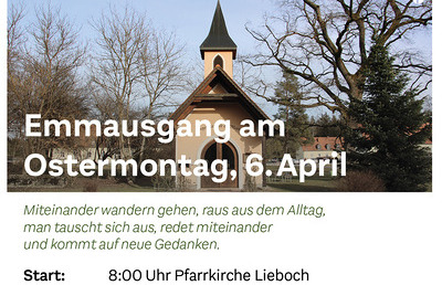 Miteinander wandern gehen, raus aus dem Alltag, man tauscht sich aus, redet miteinander und kommt auf neue Gedanken. Gehen wir gemeinsam am Ostermontag, 6. April, zur Kapelle im Kaiserwald und...