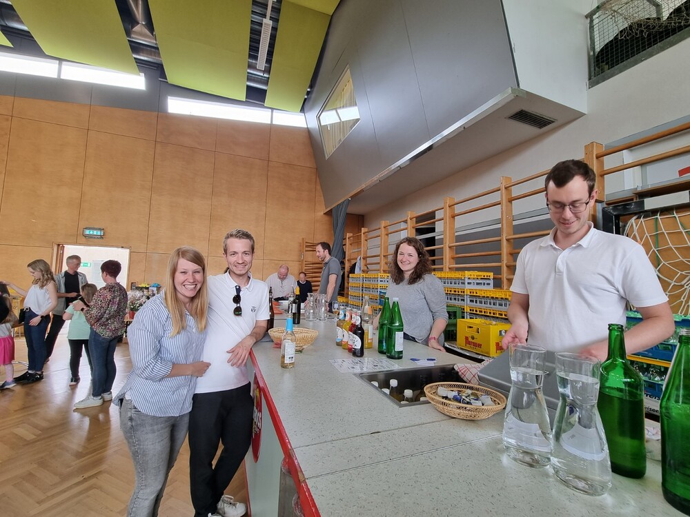 Nach der wunderschön gestalteten Erstkommunion zogen die Erstkommunionkinder in die Halle um beim Start des Pfarrfests dabei zu sein. Nachdem wir letztes Jahr richtiges Wetterglück hatten, mussten wir diesmal in die Veranstaltungshalle ausweichen. Dem Wetter zum Trotz war die Stimmung sehr gut. Das Kinderprogramm war gut besucht, viele Preise wurden verlost und natürlich gab es wieder genug zu essen und zu trinken. Obwohl diesmal besonders viele Torten gebacken wurden, waren am Schluss alle weg.