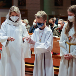 Am Gründonnerstag feierten wir eine gemeinsame Seelsorgeraum-Messe in der Pfarrkirche Lieboch. Mit dabei waren drei Priester, drei Diakone, drei Pastoralreferentinnen, über 20 Ministranten und verschiedene weitere Dienste aus unseren sechs Pfarren.